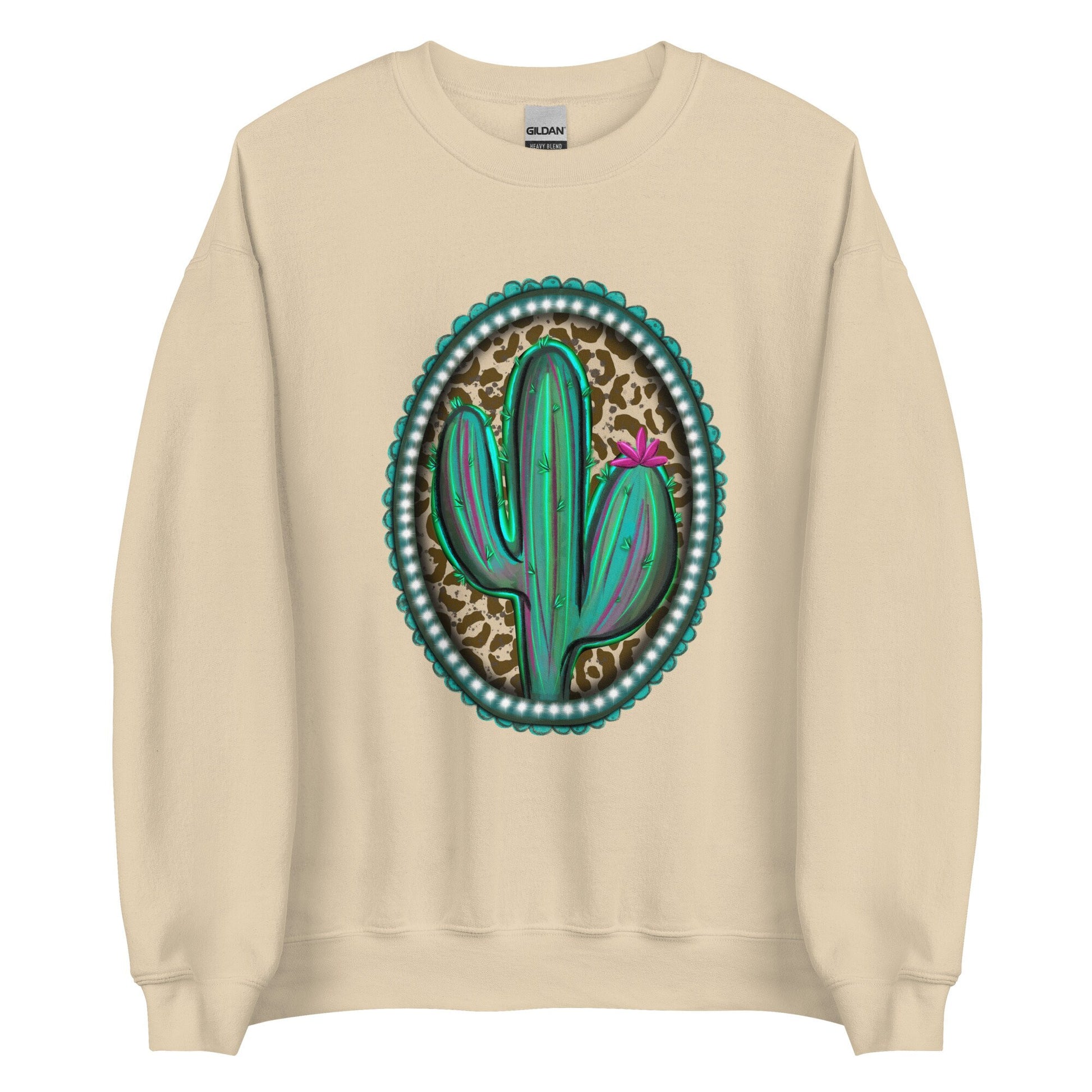 Western Brooch with cactus and leopard print Unisex Sweatshirt